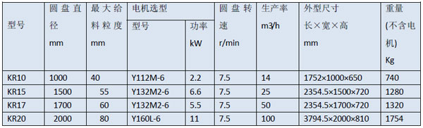 KR 系列圓盤給料機(jī)技術(shù)參數(shù)表